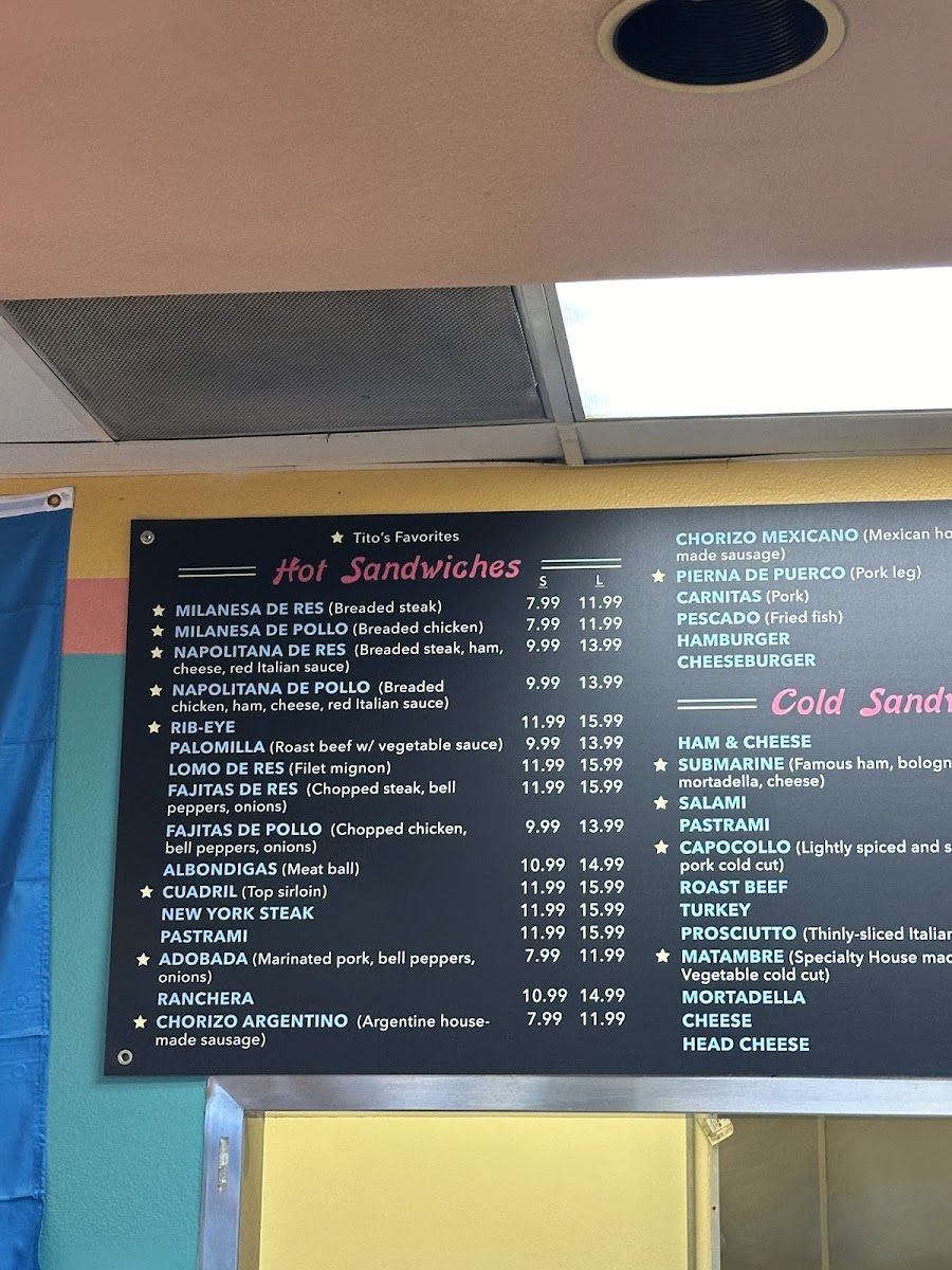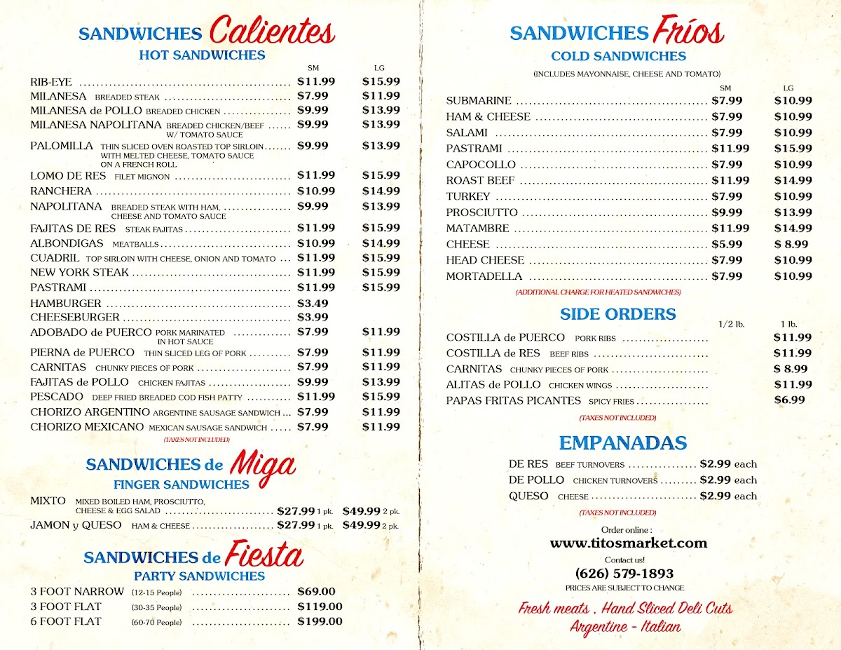 Welcome to Tito's Market, a delightful sandwich shop nestled in El Monte, CA. This hidden gem is renowned for its mouthwatering selection of cold sandwiches, including delectable options like Pastrami, Turkey, and the specialty Matambre—a house-made beef and vegetable cut. The menu also features empanadas in Beef, Chicken, and Cheese, all priced at a budget-friendly US$2.99.